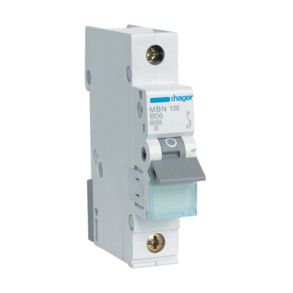 Hager MBN106 Circuit Breaker 6A 230/400V IP2x Thermal & Short-Circuit Protection