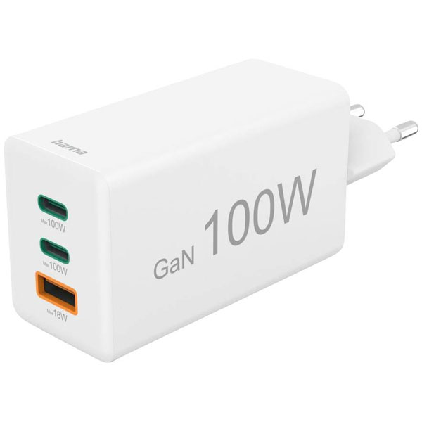 Hama 201997 GaN USB charger 2x USB-C 1x USB-A 100 W White