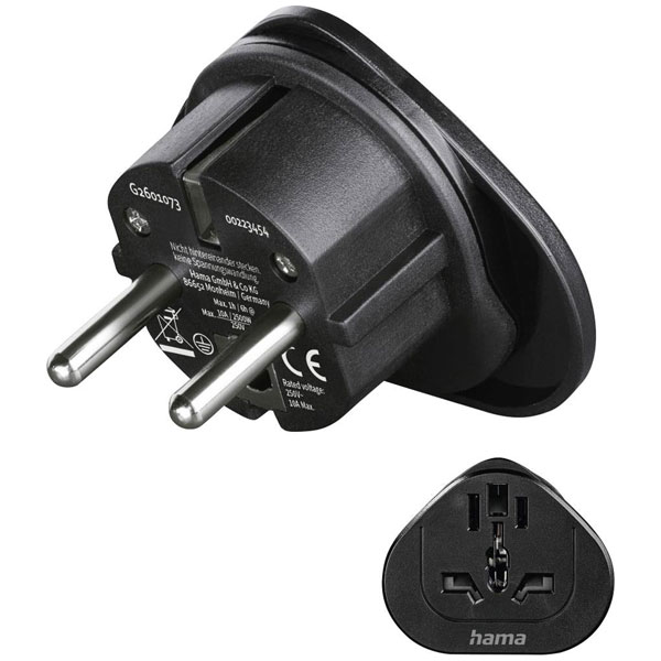 Hama 223454 Travel adapter 3-pin universal world to EU black