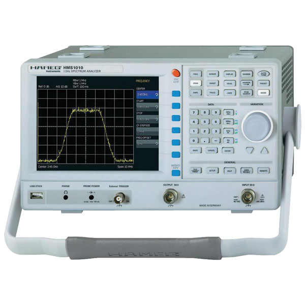 The HAMEG HMS1010 1GHz spectrum analyzer offers a frequency range of 100KHz
