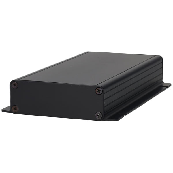 Hammond 1455JF1601BK Extruded Enclosure Side Mounting 160X78X27 Black Anodise - Designed to house P.C. boards or for equipment interfacing. Integrated slotted flanges allow for easy wall mounting. Flange provides a completely flat bottom surface and transitions seamlessly into the extrusion body for a finished look.