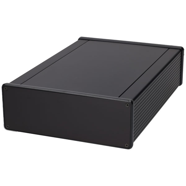 Hammond 1455U2801BK Black Extruded Al Enclosure, Metal End Panels, 279x191x66mm, Black Anodise