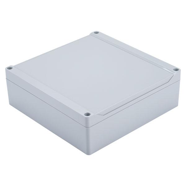 A watertight grey Polycarbonate (PC) enclosure with styled lid from Hammond's 1555 series.