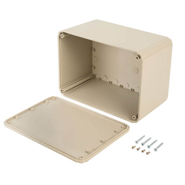 Hand held instrument enclosure 175 x 125 x 100mm from Hammond, moulded in light grey general purpose ABS plastic with standard lid.