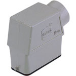 Powder-coated aluminium diecast high construction side entry hood with 2 pegs for Harting Han® 10 A Series industrial connectors.