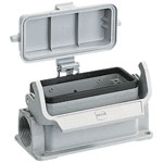 A chassis mounting housing for use with Harting Han® 16 B Series industrial connectors.