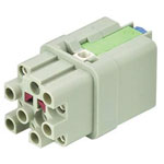 The group of parts, manufactured by Harting, consists of socket inserts designed for reliable electrical connections, emphasising high-quality design.