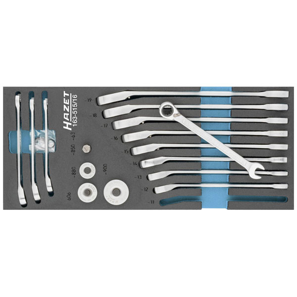 Hazet 163-515/16 Crowfoot Wrench Set 16-Piece 8-19 mm SIS Soft Foam