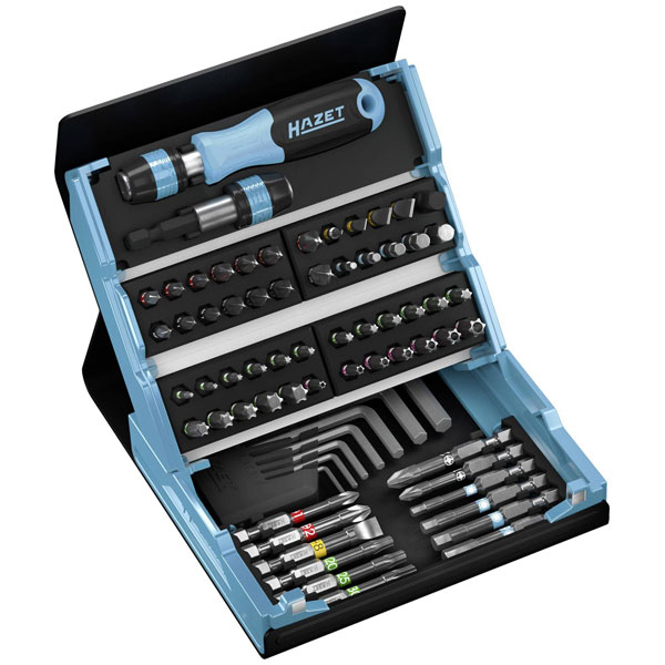 The Hazet 2200SC-1 Bit Set is a comprehensive 69-piece toolkit designed for a wide variety of screwdriving tasks, including Allen, Slot, Phillips, Pozidriv, and Star applications. Manufactured by Hazet, this SmartCase features assorted high-quality bits suitable for both professional and DIY use. Compact and organised, it ensures quick access and storage for diverse maintenance activities.