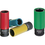 The Hazet 903SLG-15 1/2in Square Drive Impact Socket is ideal for wheel mounting and dismounting of light-alloy rims. Designed with a long style and excellent for impact operation, this impact socket is able to protect the surface of the wheel bolts (903S LG-22 without plastic insert). Additionally with a colour-coded plastic sleeve facilitates the finding of correct socket size.