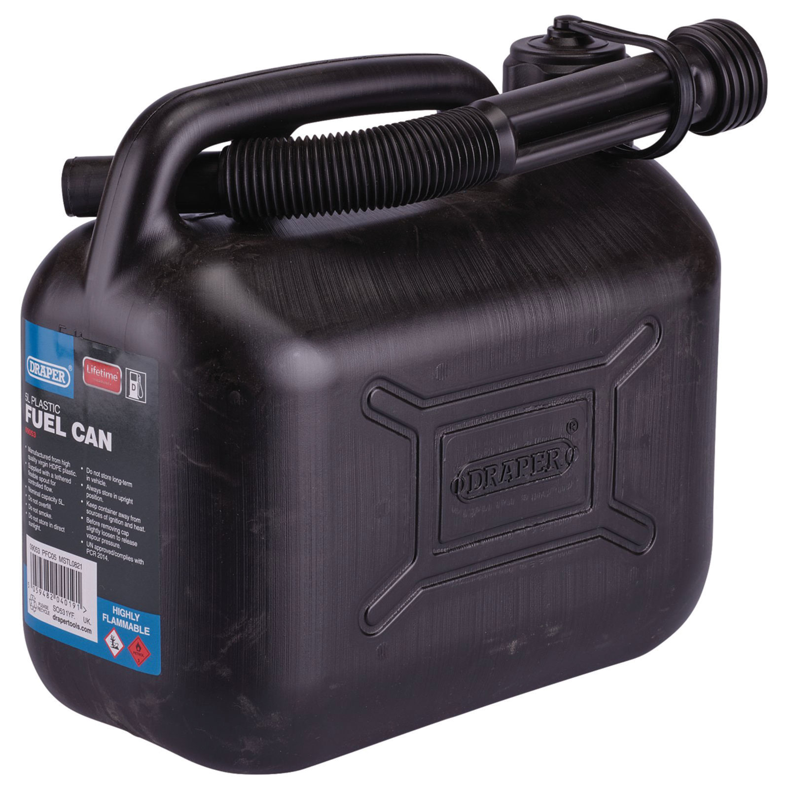This five litre UN-certified fuel can is manufactured from high-quality virgin HDPE plastic.