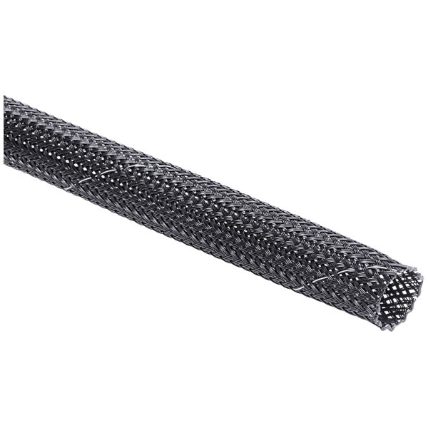 The HellermannTyton 170-81001 braided hose is a black polyester sheathing designed for cable protection, accommodating diameters from 3 to 7 mm. It features a flexible and durable construction ideal for bundling and shielding cables. This braided cable jacket is typically used in automotive, industrial, and electronic applications for enhanced cable management.