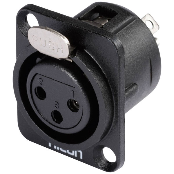 The Hicon HI-X3DF-M is an XLR connector with three straight pins and a black sleeve socket. Manufactured by Hicon, it is ideal for audio and video applications, providing reliable connectivity in professional equipment. It is commonly used in sound systems and broadcasting environments.