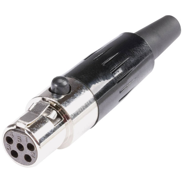 The Hicon HI-XMCF5 is a mini XLR socket connector with five pins, available in a silver finish. It is typically used for professional audio equipment due to its compact size and reliable connection. This single piece connector is ideal for applications requiring robust and secure XLR coupling.