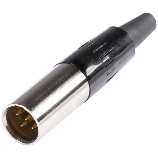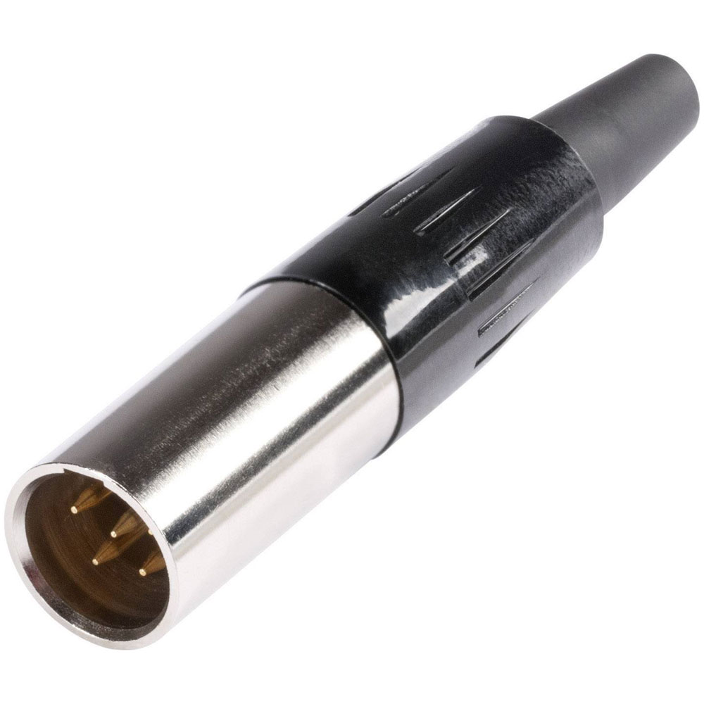 The Hicon HI-XMCM5 is a Mini XLR connector plug with a straight design and five pins, finished in silver. Manufactured by Hicon, this connector is ideal for high-quality audio and professional sound equipment applications. Its compact size makes it suitable for tight spaces while maintaining reliable connectivity.