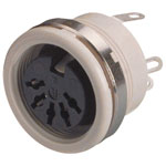 A 5-pin, 180° panel mounting, locking DIN socket with mounting flange. Ideal for audio, video and data technology applications.