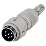 Locking plastic DIN plug with 6 ways from the Hirschmann MA series, suitable for use with audio, video, measurement and control equipment.