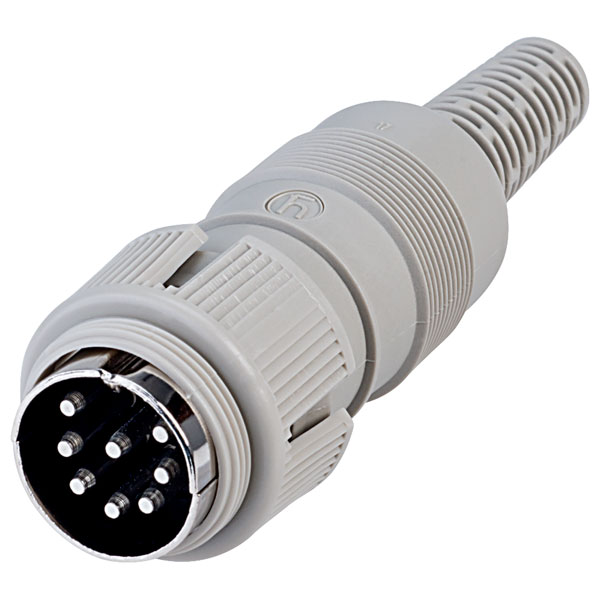 Locking plastic DIN plug with 8 ways from the Hirschmann MA series, suitable for use with audio, video, measurement and control equipment.