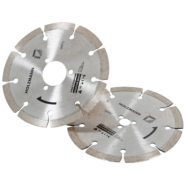 Holzmann Maschinen offers the DBS125DIAM, a diamond replacement blade set that includes two pieces. These blades are known for their durability and precision, ideal for cutting hard materials. Common applications include use in construction and renovation projects.