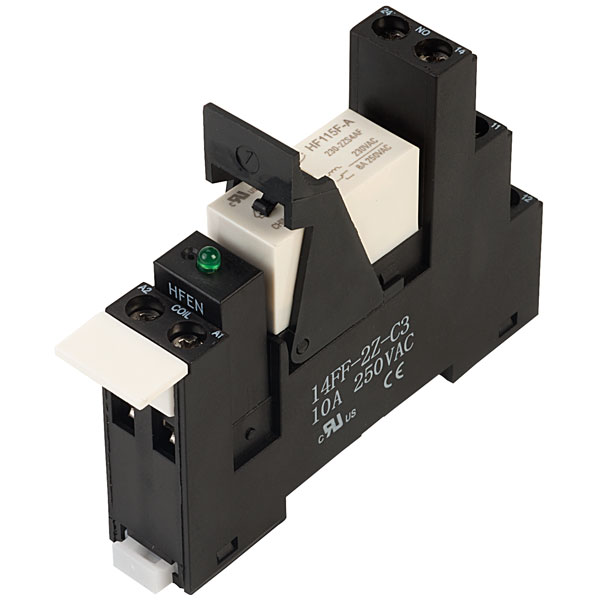 An 8A 230V AC double pole relay interface module that features coil/contact separation. The module is supplied complete with relay, socket, LED, ejector clip and identification label, making it easy to order all these components with just one part number, making it easy to order all these components with just one part number. Suitable for many applications, e.g. industrial automation, heating and cooling systems, elevators, etc.