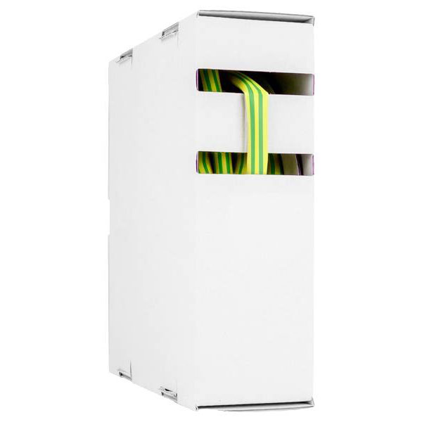 Hongshang 2181443108 heatshrink is a yellow-green tube with a 3.20 mm diameter and 1.60 mm upon shrinkage, featuring a 2:1 shrinkage ratio over a length of 15 m. This heatshrink is manufactured without adhesive, making it ideal for bundling and insulating cables where adhesive is unnecessary. It is commonly used in electrical and electronic applications to protect and reinforce wire connections.