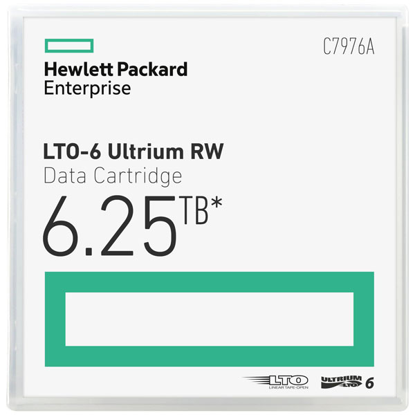 HP C7976A LTO-6 Ultrium Cartridge is a high-capacity, reliable data storage solution, offering up to 6.25TB of compressed data or 2.5TB native capacity. As a member of the Linear Tape-Open (LTO) Ultrium technology family, this cartridge is engineered to provide dependable performance for data backup and archiving tasks. It is ideal for use in enterprise environments where large-scale data storage and long-term data preservation are required, ensuring data integrity and efficient retrieval. The cartridge's robust design makes it suitable for high-frequency write and read operations, typical in data centres and professional IT setups, where data protection and secure archival storage are paramount.