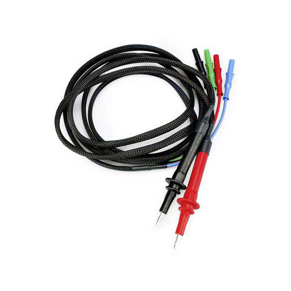 HT Instruments produces the KIT Kelvin, featuring a 4 mm jack connector and banana jack. This green measuring accessory is essential for multimeter measuring leads and supports alligator clips for secure connections. Ideal for use in supplementary measurements, it enhances multimeter functionality for precise testing.