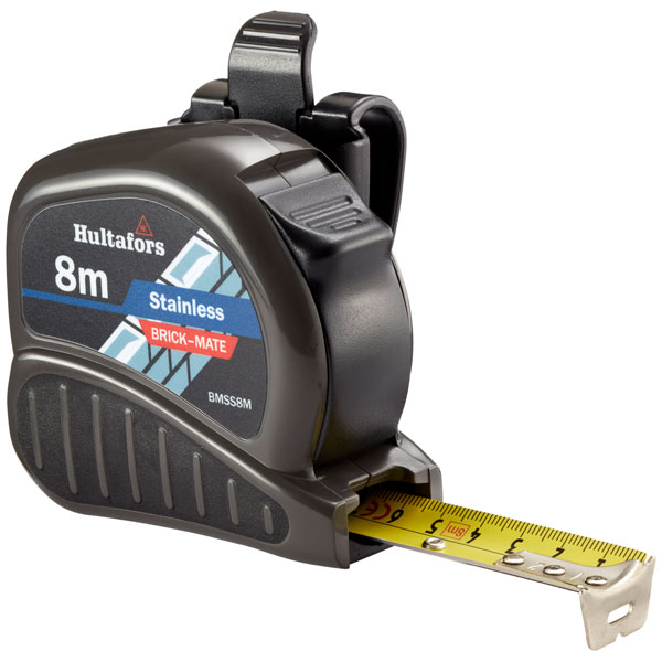 The Hultafors Stainless Steel Brick-Mate Tape has a unique blade design with three scales to calculate brick and block quantities and course heights, along with a conventional metric scale accurate to EC Class I. The blade is made from durable stainless-steel tape and fitted with a strong stainless-steel end-hook with a reinforcement plate.