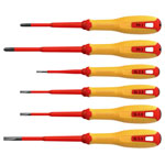 The Hultafors 6 Piece VDE Screwdriver Set. Developed for professional use together with craftsmen. With an extra narrow blade design for better access in confined spaces. Each screwdriver is tested and certified according to IEC 60900. For working on electrical installations up to 1,000 V.