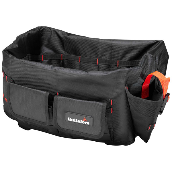 The Hultafors Tool Bucket Organizer built for the Hultafors Tool Bucket. The inside is lined with small and mid-size pockets. On the outside you’ll find a holster for a cordless drill and larger pockets, with and without lids. It will help you to organize your tools along the sides of the bucket, preventing smaller things from ending up at the bottom and giving you a better overview of your equipment. Made from heavy-duty ballistic polyester fabric for increased durability. Easily inserted into the bucket and secured by straps for a perfect fit.