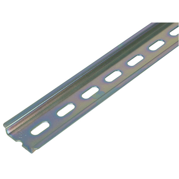 35 x 7.5mm top-hat style, slotted DIN rail.