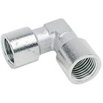 An elbow connector with G1/4 internal threads. Manufactured from nickel plated brass and suitable for use in compressed air systems.