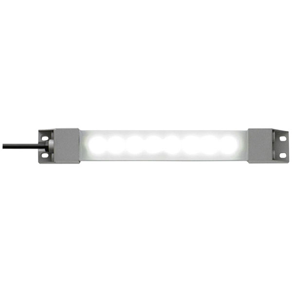 The Idec industrial LED indicator light LF1B-NB4P-2THWW2-3M is a white light with 2.9 W power and 160 lm brightness, operating at 24 V DC. Measuring 210 x 27.5 x 16 mm, it is designed for efficient lighting in switchboards, cabinets, and workplaces. Typical applications include industrial plant and cupboard lighting, providing reliable illumination.