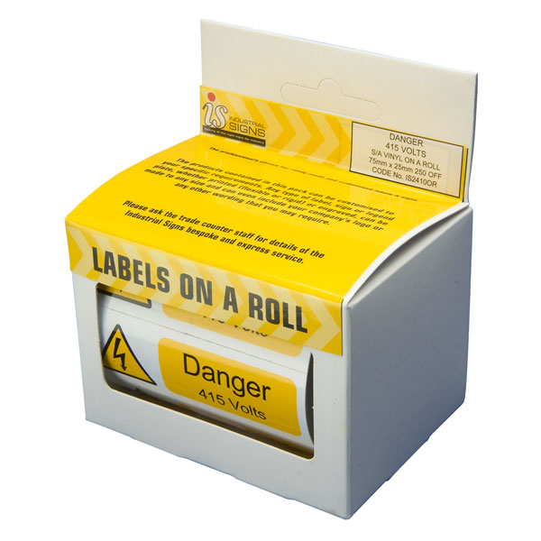 Industrial Signs IS24100R Danger 415V 75x25 - Pack of 250 S/a Vinyl Roll
