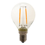 A 2W mini globe LED filament lamp with an E14 fitting. This cutting edge LED lamp is from the Omni-Lamp range and features an LED filament chip that gives a super-wide beam angle and a warm white light and brightness that matches a conventional filament bulb. The bulb has the appearance, feel and weight of a traditional light bulb, making it ideal as a retrofit replacement. Perfect for use as a decorative lamp in living rooms, dining rooms, bedrooms and hotels, in classic or modern wall of floor/table lamp fittings.