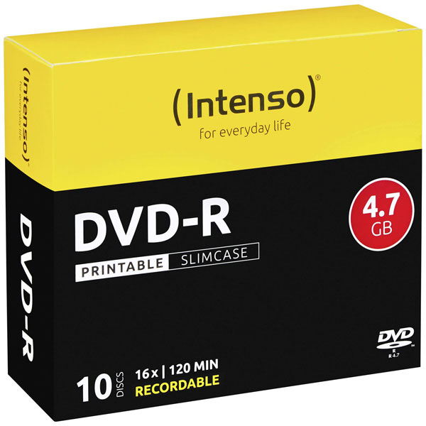 Intenso 4801652 Blank DVD-R 4.7 GB 10 pcs Slim case Printable Data Storage