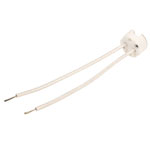 The VJ11M is a Porcelain Lampholder from International Lamps. This low voltage lampholder takes standard dichroic lamps fitted with a 2 pin GX5.3 base. The cable length is 100mm.
