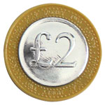 Plastic UK Sterling 2 pound play coins designed to help children identify different coins and learn the value of money.