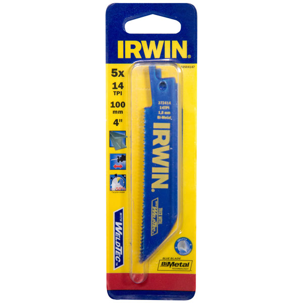 Irwin 10504147 414R Sabre Saw Blade Metal Cutting 100mm 14 TPI Pack of 5