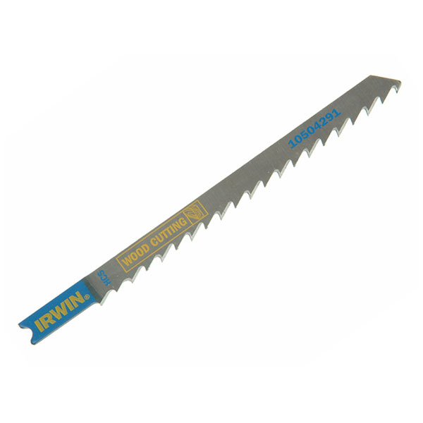 Irwin Jigsaw Wood Cutting Blades made from carbon steel for use in softer materials such as wood, laminated chipboard, and plastics.