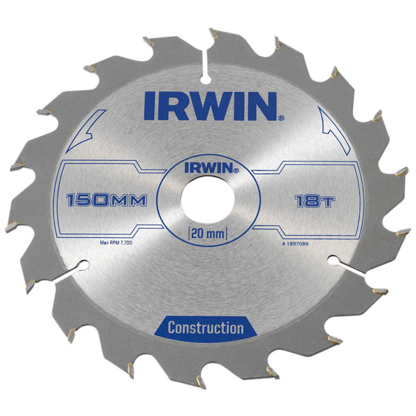 The Irwin Construction Circular Saw Blade with expansion slots which dissipate heat and prevent warping. Its construction grade tungsten carbide tips retain their edge, and the plate is fully hardened for durability.