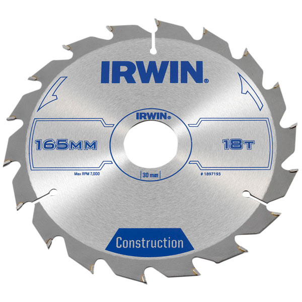 The Irwin Construction Circular Saw Blade with expansion slots which dissipate heat and prevent warping. Its construction grade tungsten carbide tips retain their edge, and the plate is fully hardened for durability.