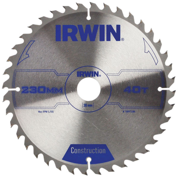 The Irwin Construction Circular Saw Blade with expansion slots which dissipate heat and prevent warping. Its construction grade tungsten carbide tips retain their edge, and the plate is fully hardened for durability.