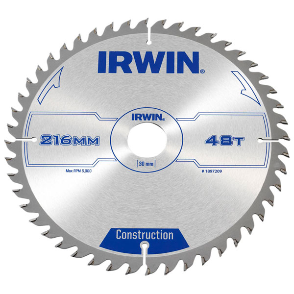 The Irwin General Purpose Table & Mitre Saw Blade with construction grade tungsten carbide tips that retain their edge for longer and are resharpenable. Expansion slots help to dissipate heat and prevent warping. The blades have a fully hardened plate that runs truer for longer and with more accuracy.