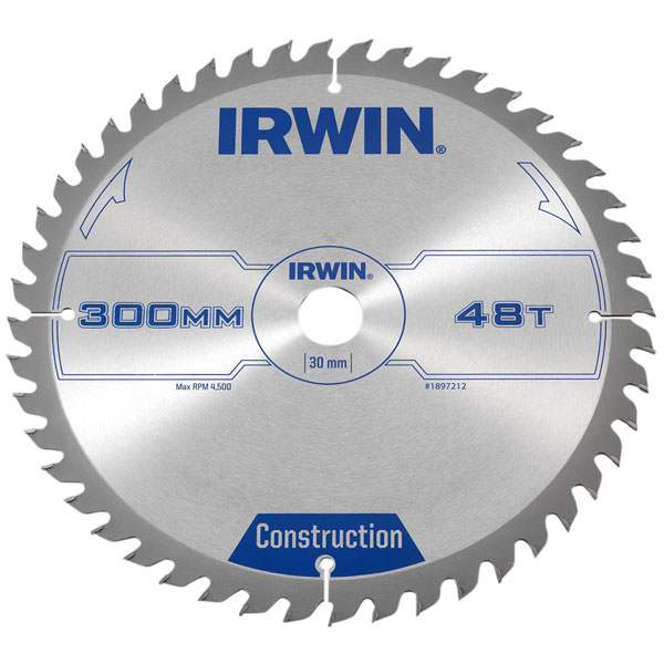 The Irwin General Purpose Table & Mitre Saw Blade with construction grade tungsten carbide tips that retain their edge for longer and are resharpenable. Expansion slots help to dissipate heat and prevent warping. The blades have a fully hardened plate that runs truer for longer and with more accuracy.