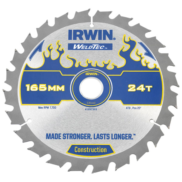 IRWIN® 1897393 Weldtec Cordless Circular Saw Blade 165 x 20mm x 24T ATB
