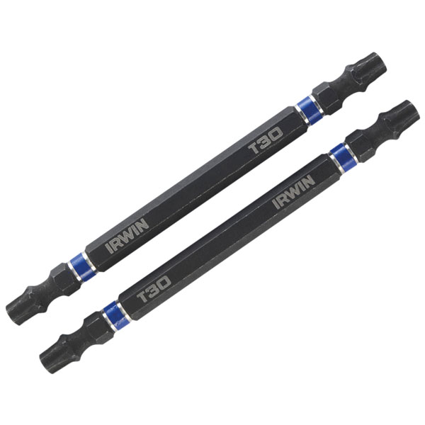 The Irwin Double Ended TORX Impact Screwdriving Bits are specifically engineered for use in high torque Impact Drivers. They are manufactured from heavy-duty, high-grade steel and have a 3 times increased bit life compared to standard screwdriver bits.