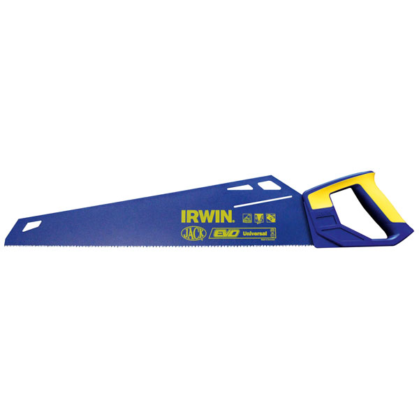 The IRWIN Jack Evo Universal Coated Saw has a PTFE coating for increased speed when sawing and improved wear resistance. Its optimised tooth design and set allows for maximum versatility, speed and quality of cut. The hard point teeth stay sharp, 6-8 times longer than non-hardened teeth.
