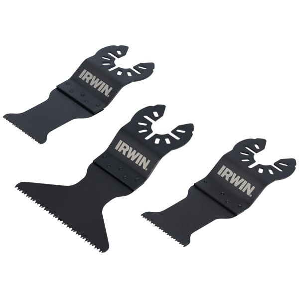 IRWIN® 3 Piece Oscillating Blade Set. Suitable for cutting a range of common materials; wood, plasterboard, PVC and nail embedded wood. Ideal for use on renovation jobs. Contains:
