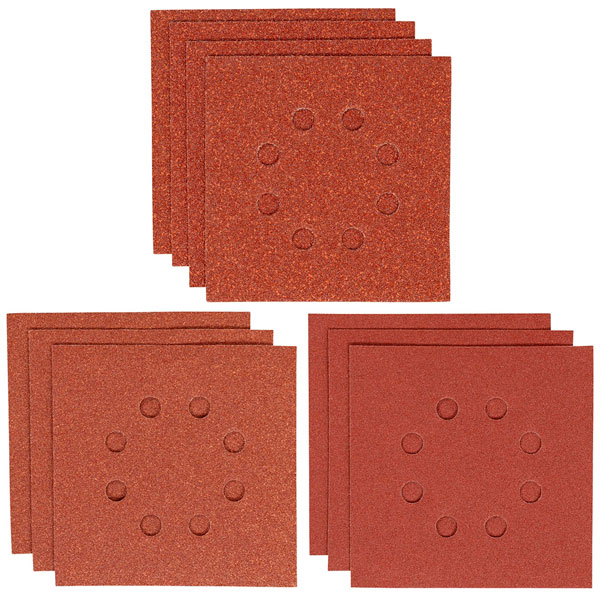 IRWIN® 1/4 Punched Sanding Sheets with Velcro attachment, reduced space between the sanding sheet and the machine allows for higher removal rate. Perforation allows for more efficient dust extraction.
